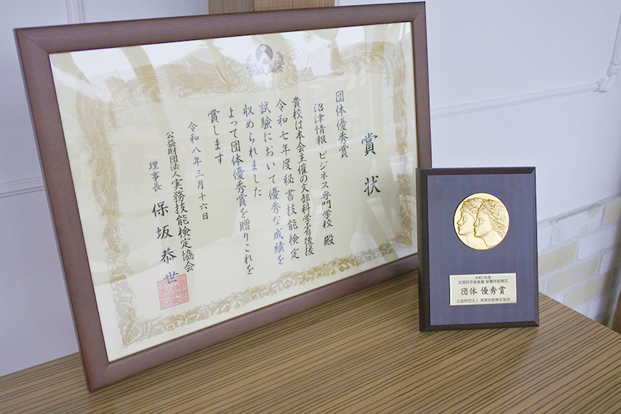 【ビジネス科・こども保育科】令和7年度 秘書技能検定 優秀団体賞を受賞しました。