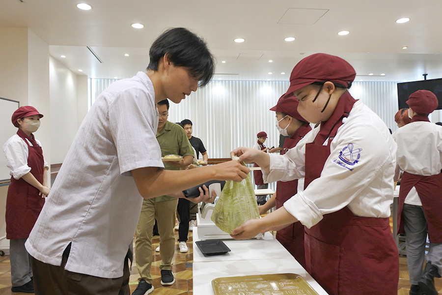 今回の実習では、これまでに学んだ製菓・製パン技術、販売接客を実践、仲間でしっかりコミュニケーションを取り、チームワークでの作業の大切さを学びました。