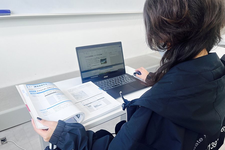 入学してまだ半年、高校までにパソコンをほとんど触ってこなかった学生も、友達に教えてもらいながら、何度も問題にチャレンジすることで合格を掴み取りました。