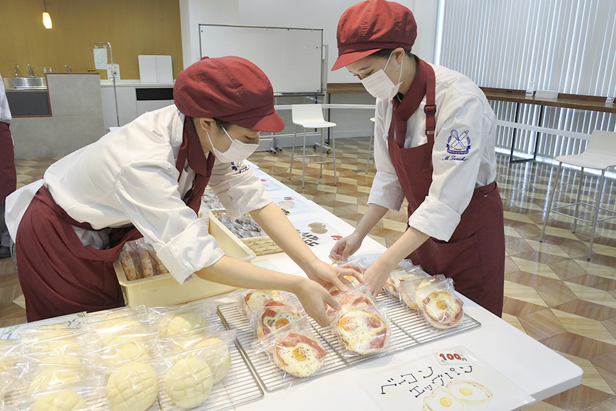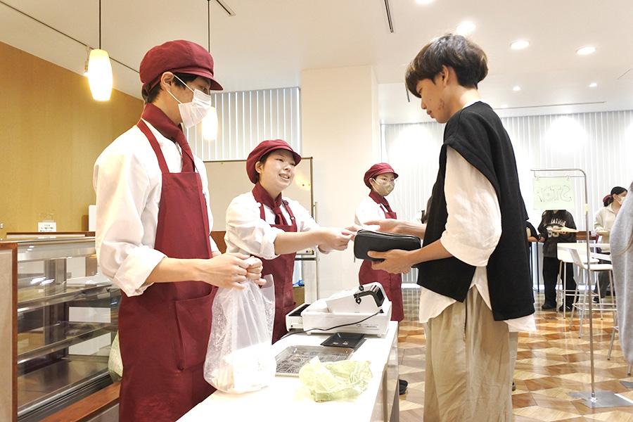 今回の実習では、これまでに学んだ製菓・製パン技術、販売接客を実践、仲間でしっかりコミュニケーションを取り、チームワークでの作業の大切さを学びました。
