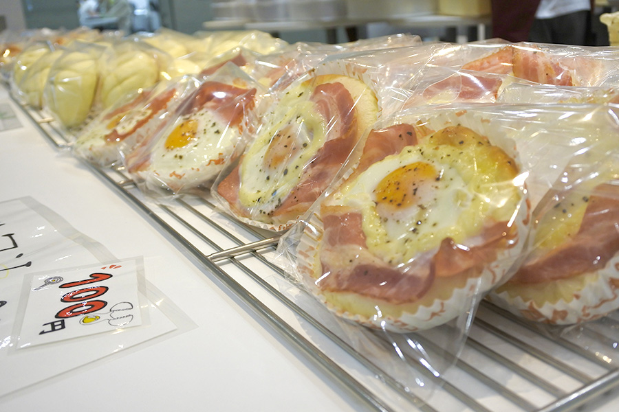 今回はジューシーなカレーフィリングを詰めた「カレーパン」に、なめらかなチョコクリームをサンドした「チョコフランス 」、クッキー生地を使ったサクサクの「メロンパン 」、外はカリカリ、中はふんわり仕立ての「しおパン 」に加え、新たにゆでたまごとカリッと焼いたジューシーなベーコンを乗せた「ベーコンエッグ」、バターを生地に折り込んで軽やかに焼き上げた「クロワッサン」と6種類のパンを用意。
