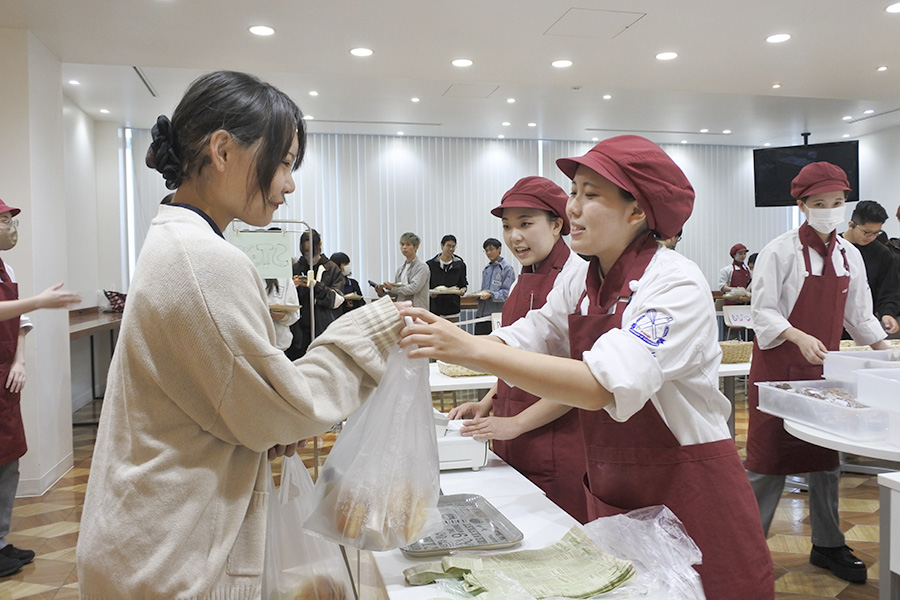学生手作りのパンやお菓子はみるみる売れていき、大盛況♪