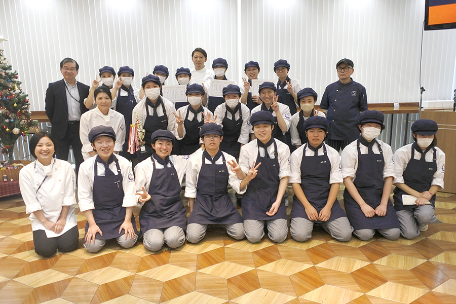 チームを組み、それぞれが工夫を凝らしたオリジナルのクリスマスケーキを考案し、アイデアや味・口触り、見た目など製菓技術を競いました。