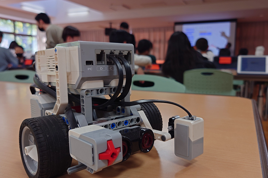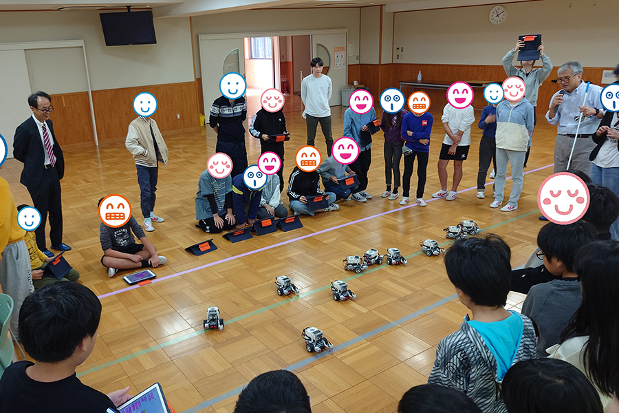 今回は、10月に5年生のレゴロボットを使った走行プログラミング、11月に4年生のScratchを使った鬼ごっこゲーム制作をそれぞれ実施し、コンピュータ科の学生たちがボランティアとしてレクチャーしました。