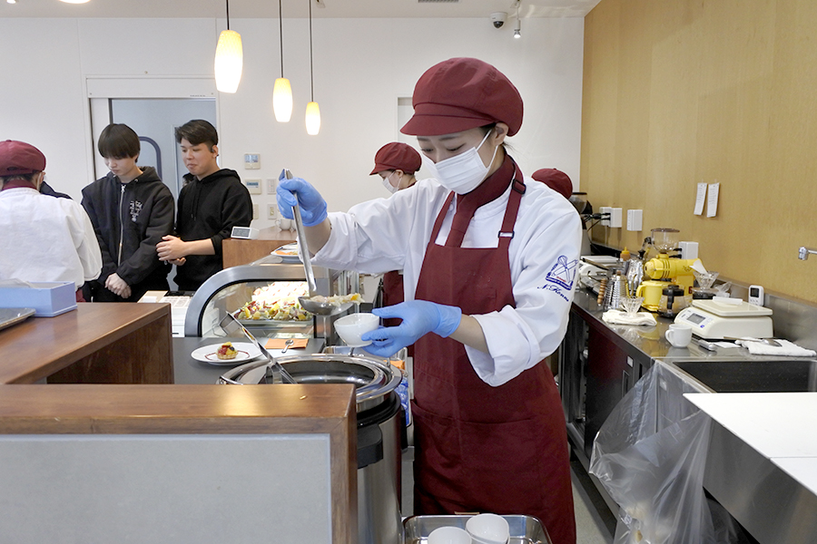 製造から販売まで学生それぞれが役割を分担し、実習当日に提供するメニューを考案。