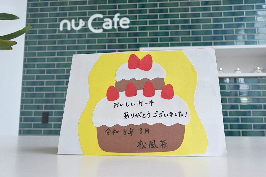 この度、松風荘に在籍される皆さまより、製菓・製パン科へお礼のメッセージカードをいただきました。